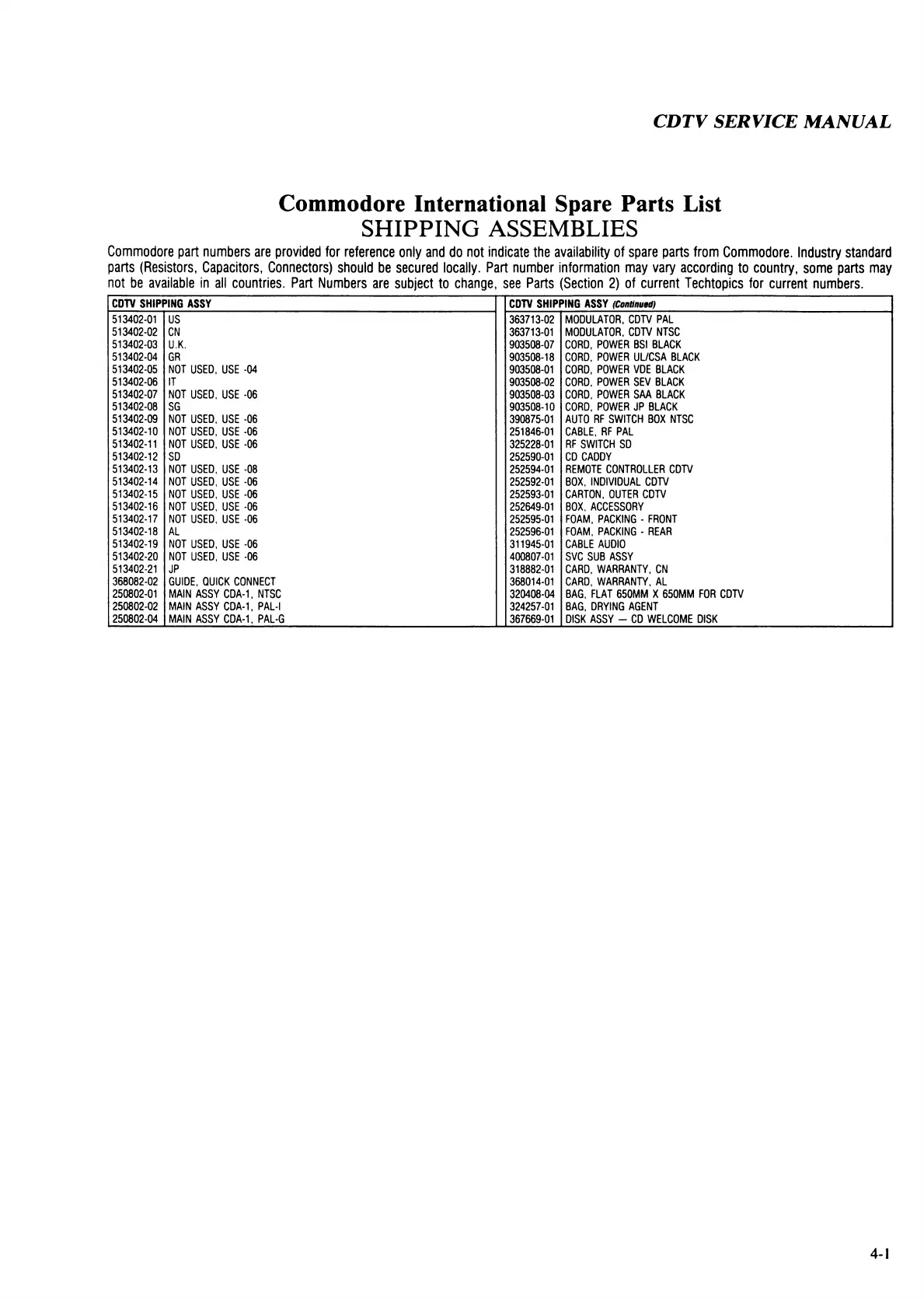 CDTV SHIPPING ASSY CDTV SHIPPING ASSY (Contfnued)
