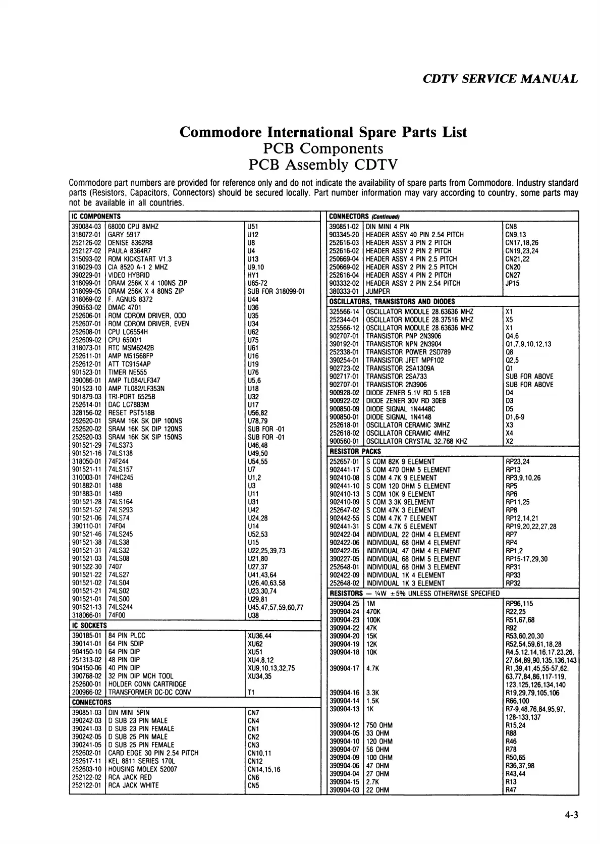 Commodore part numbers are provided for reference only and do not indicate the availability of spare parts from Commodore. Industry Standard