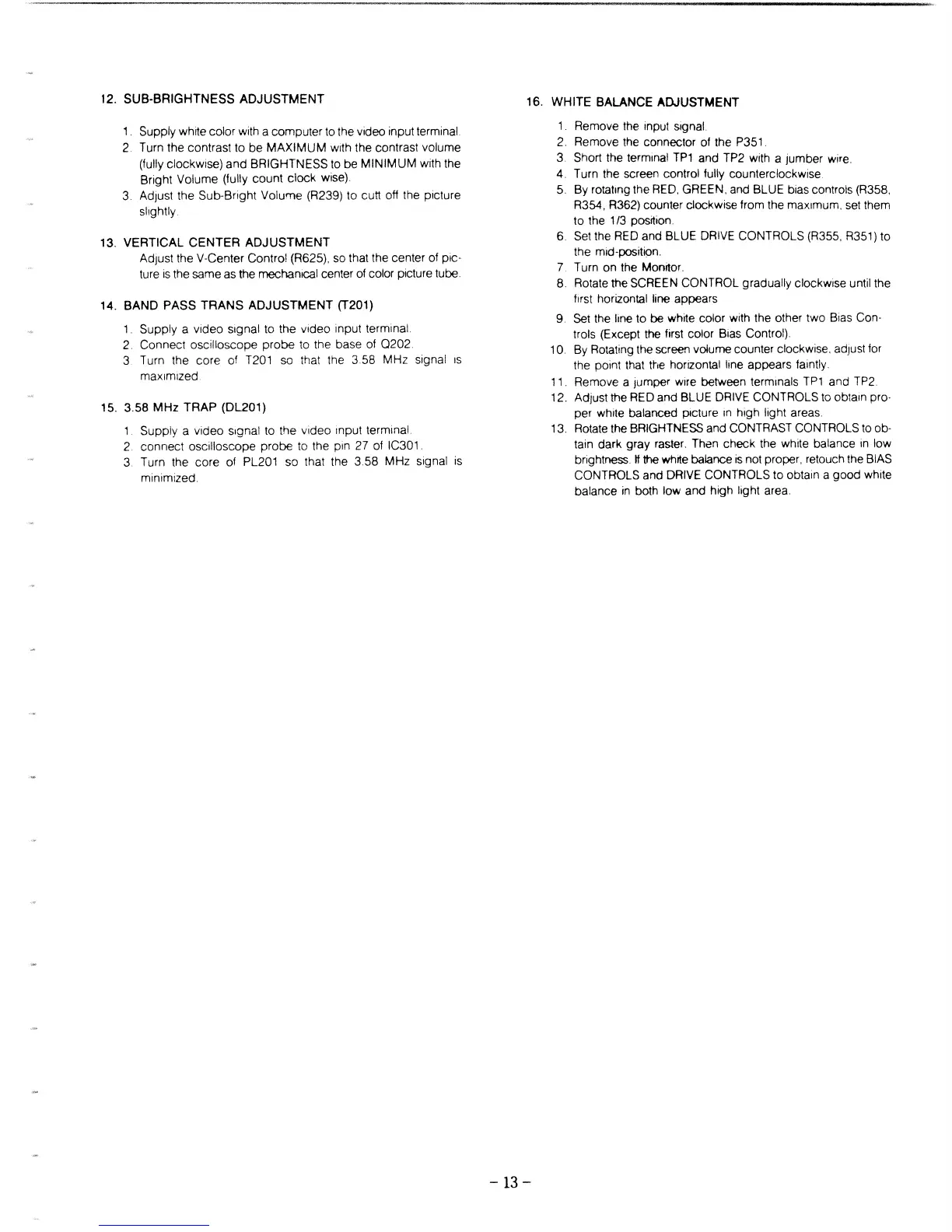 13. Rotate the BRIGHTNESS and CONTRAST CONTROLS to ob·