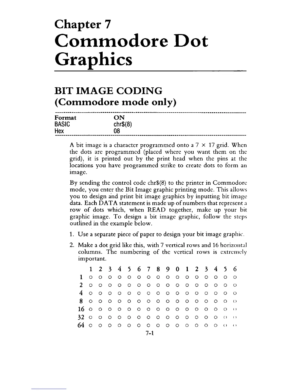 Commodore MPS 1200 - Chapter 7 Commodore Dot Graphics; BIT IMAGE CODING (Commodore mode only)