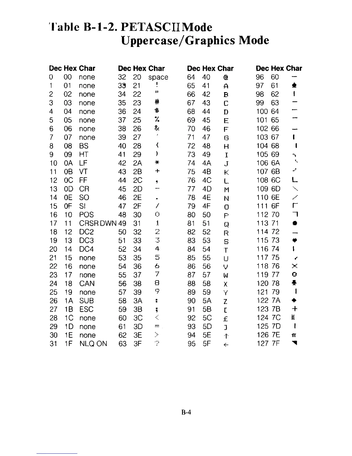 Dec Hex Char Dec Hex Char Dec Hex Char