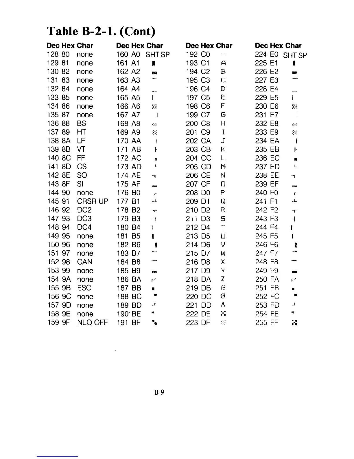 Table B-2-1. (Cont)