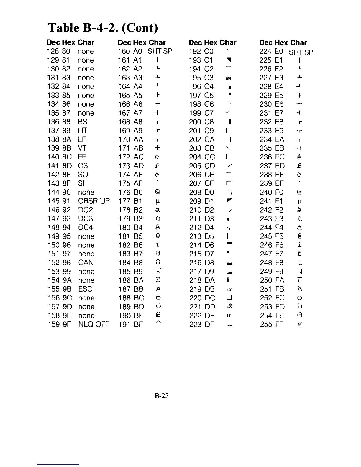 Table B-4-2. (Cont)