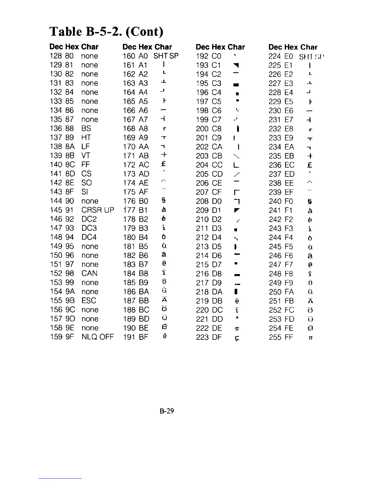 Table B-5-2. (Cont)