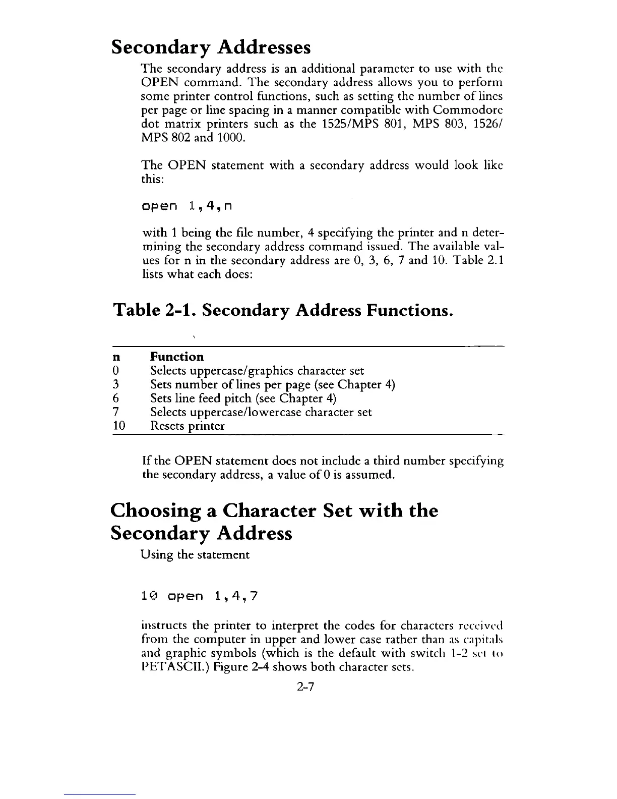 ues for n in the secondary address are 0, 3, 6, 7 and 10. Table 2.1