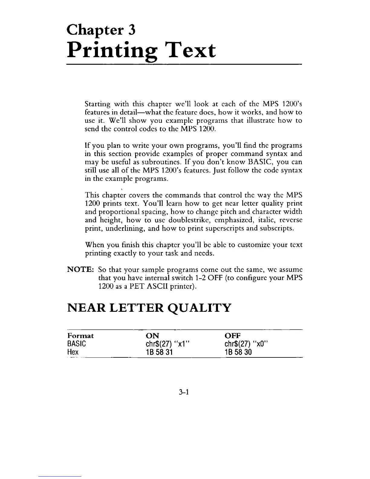 Commodore MPS 1200 - Chapter 3 Printing Text; NEAR LETTER QUALITY