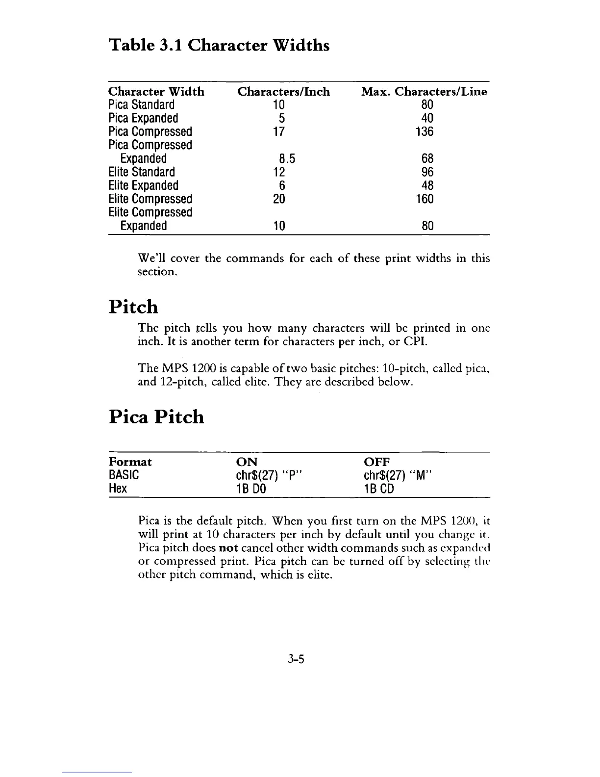 compressed print. Pica pitch can be