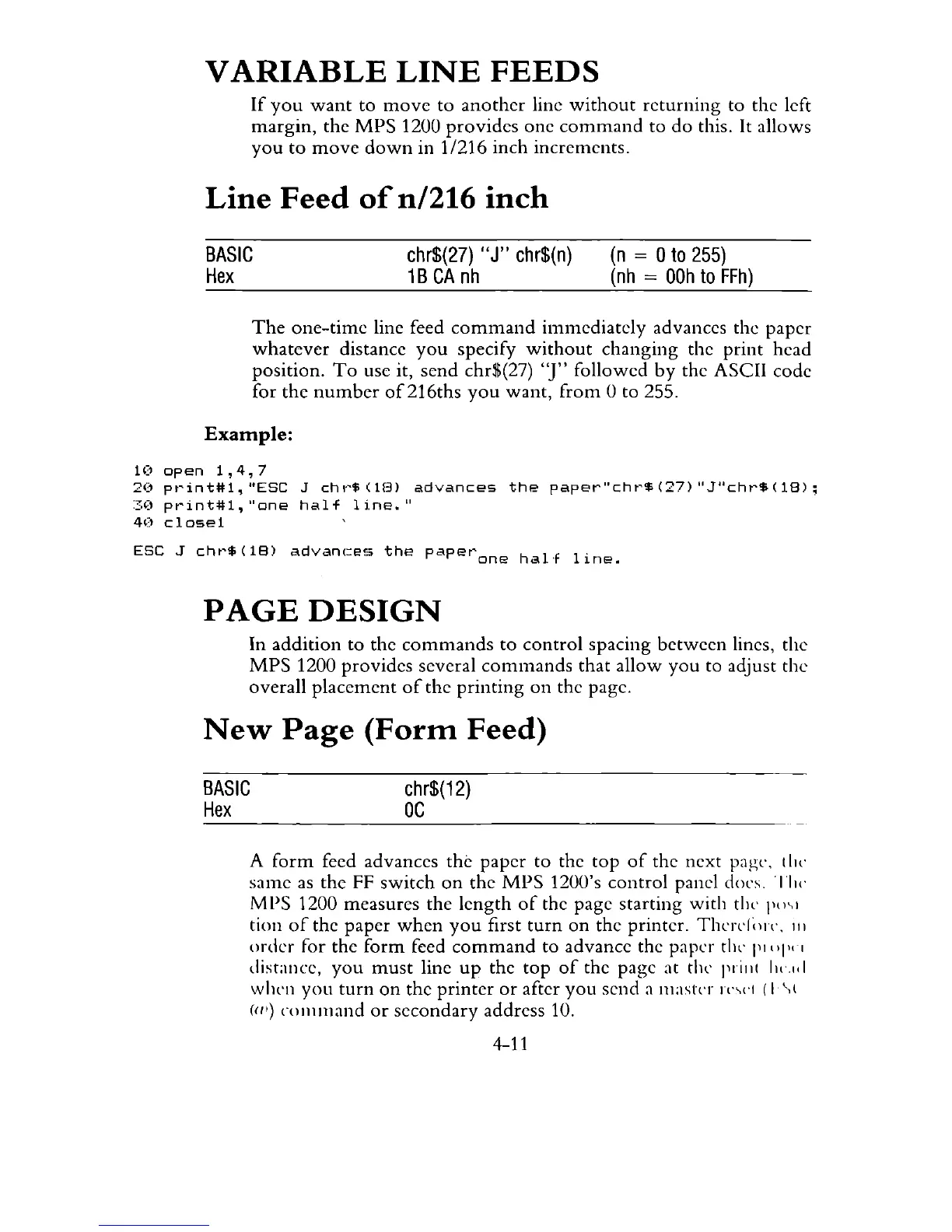 Commodore MPS 1200 - PAGE DESIGN; New Page (Form Feed)