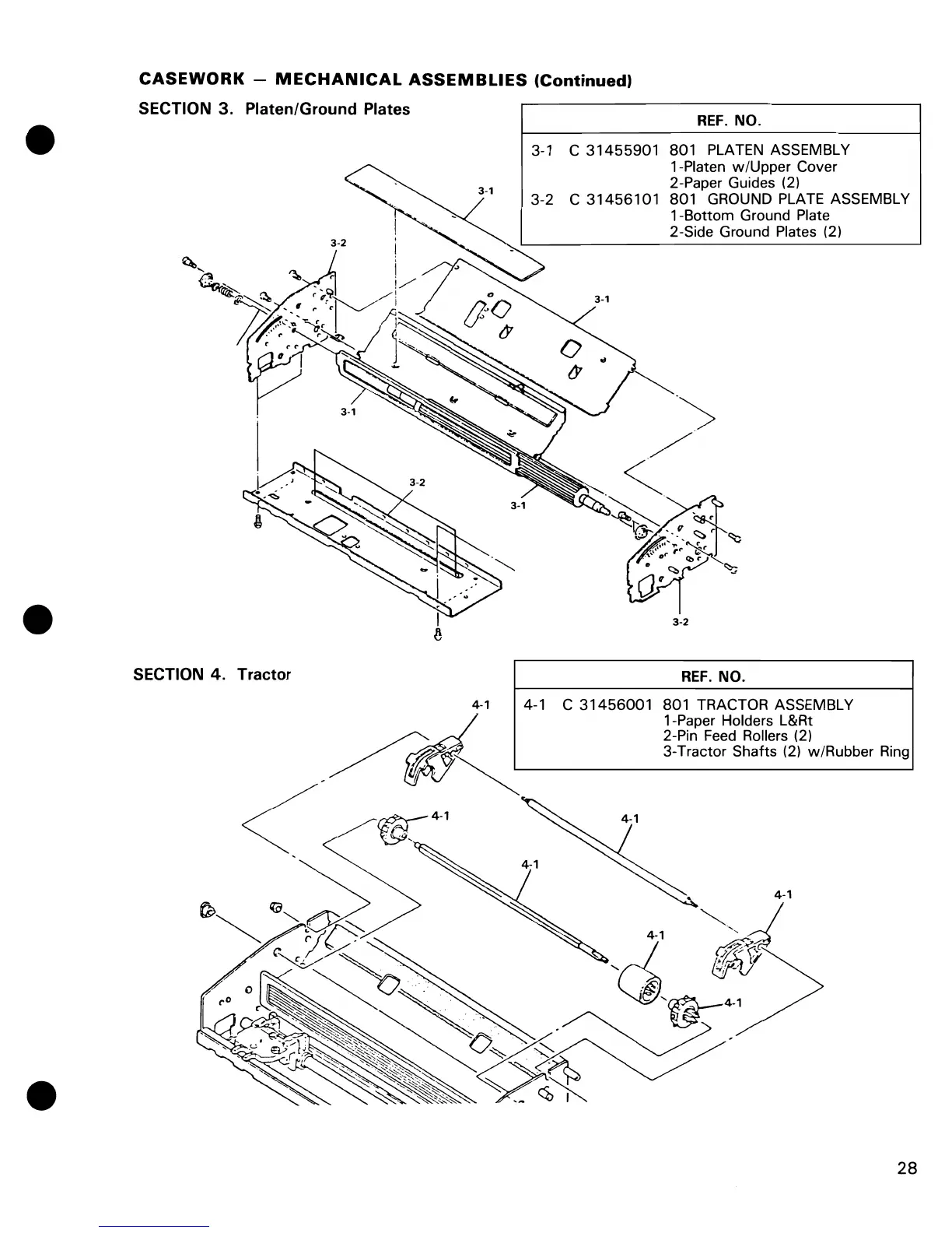 Commodore MPS-801 - SECTION 3. Platen;Ground Plates; SECTION 4. Tractor