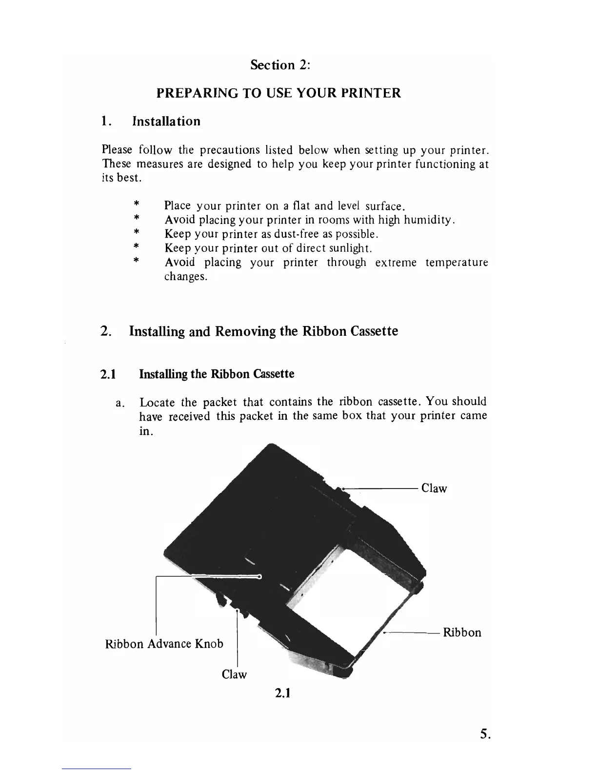 2. Installing and Removing the Ribbon Cassette