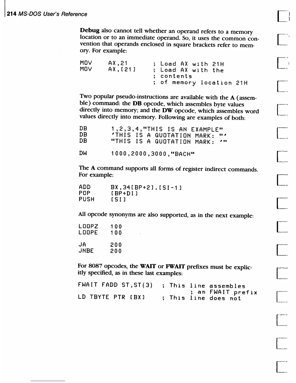 Two popular pseudo-instructions are available
