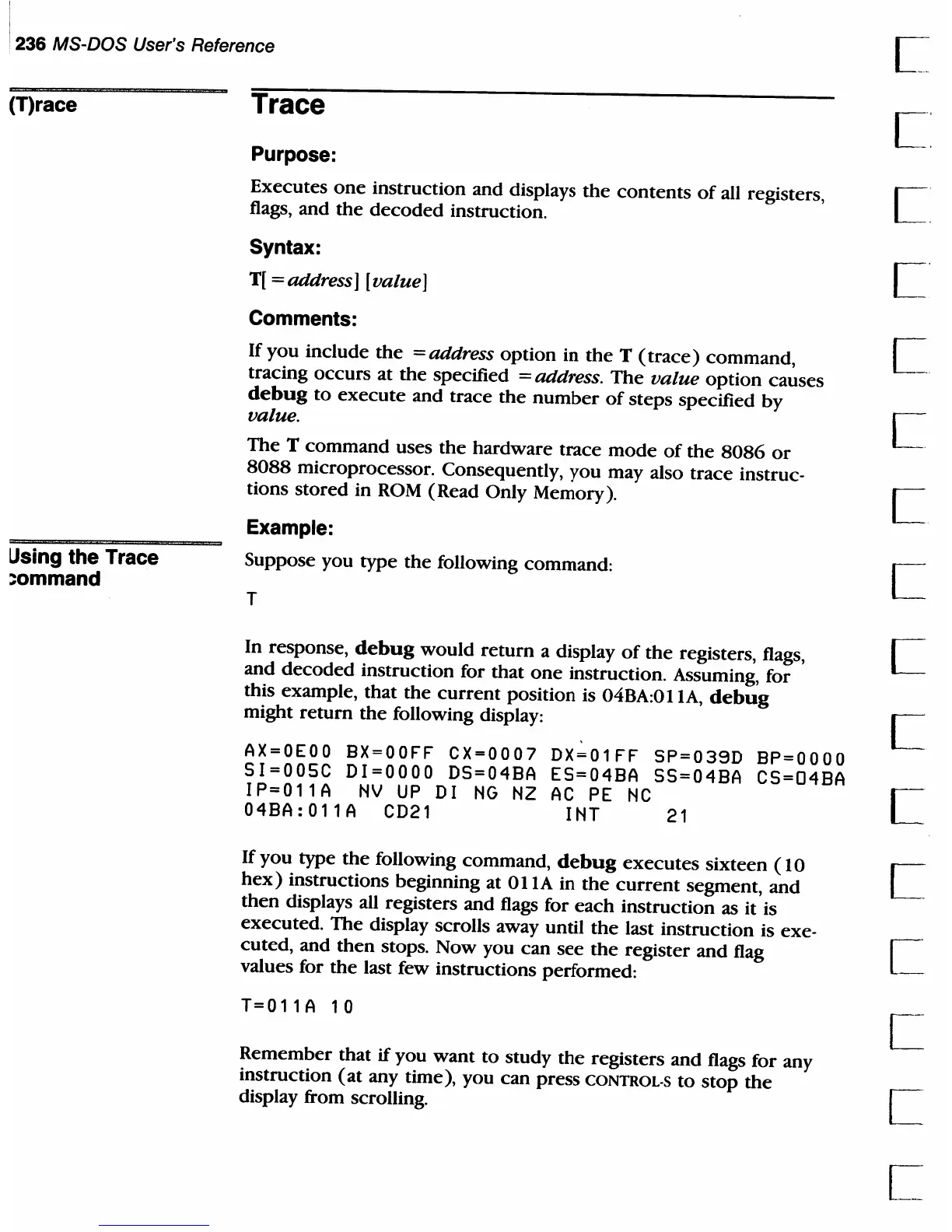 displays all registers and flags for