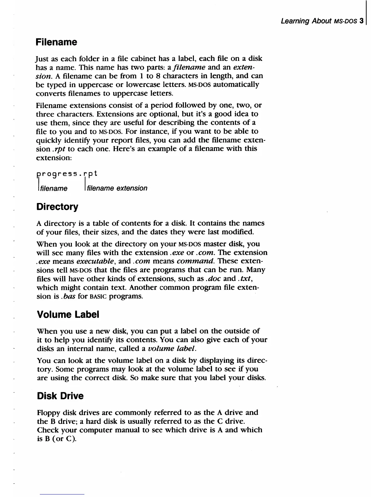 Commodore PC 10 - Filename; Directory; Volume Label; Disk Drive
