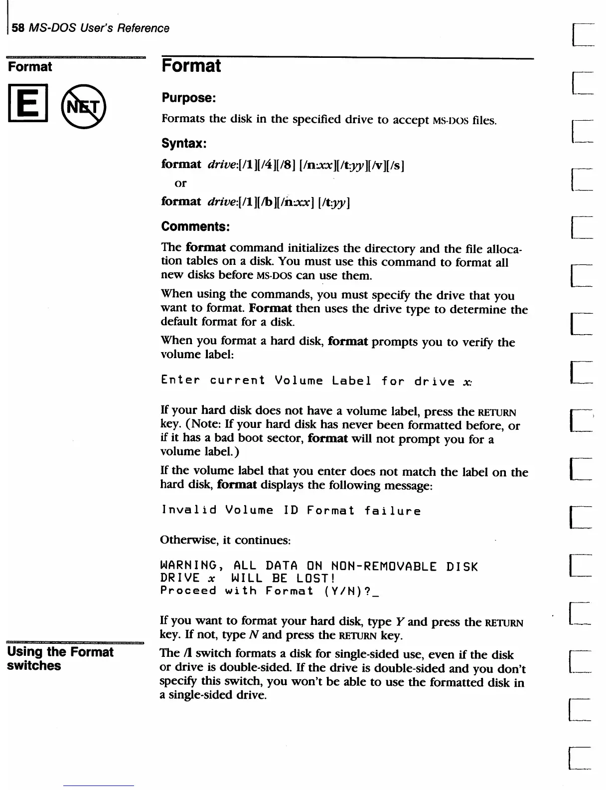 switch formats a disk for single-sided use,