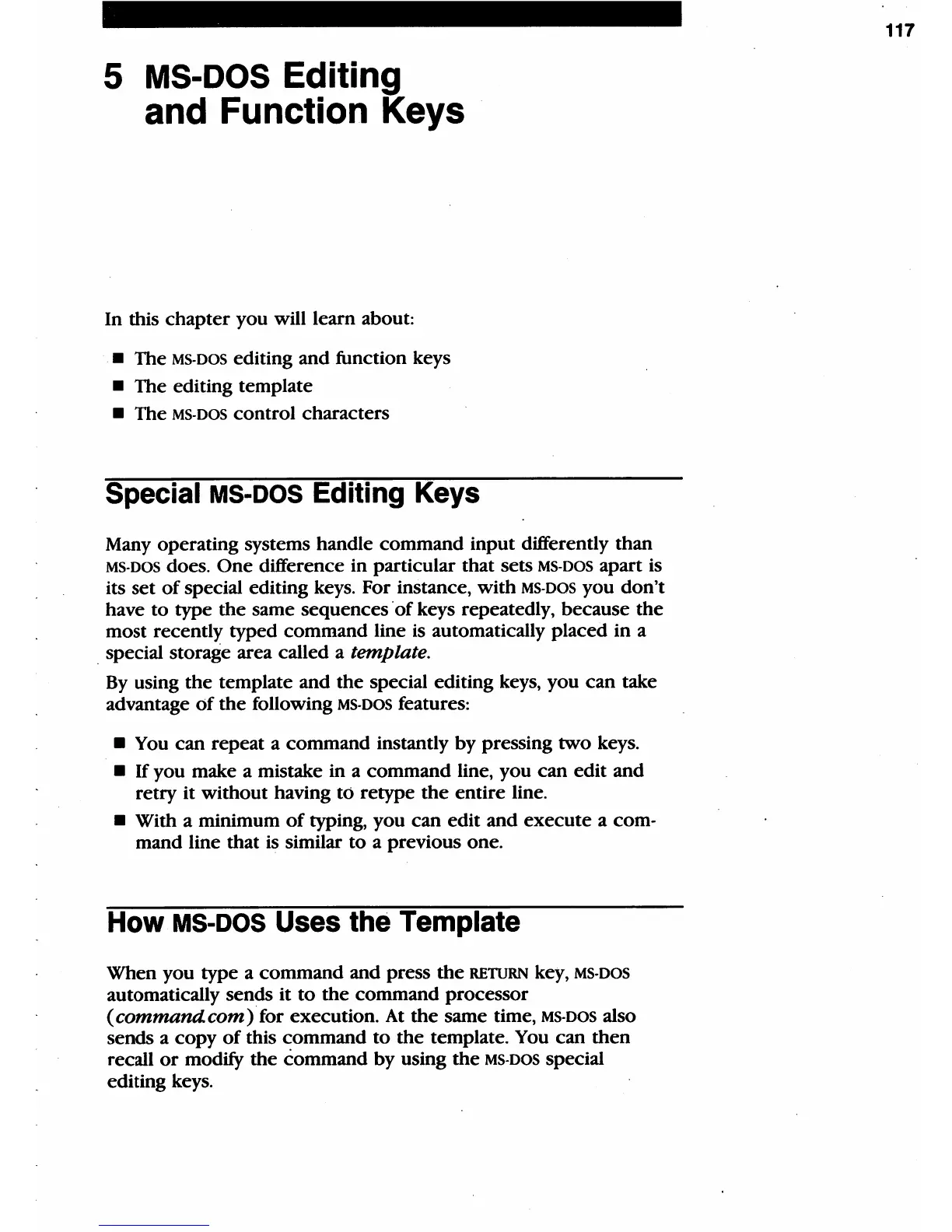 Commodore PC 20 - MS-DOS Editing and Function Keys