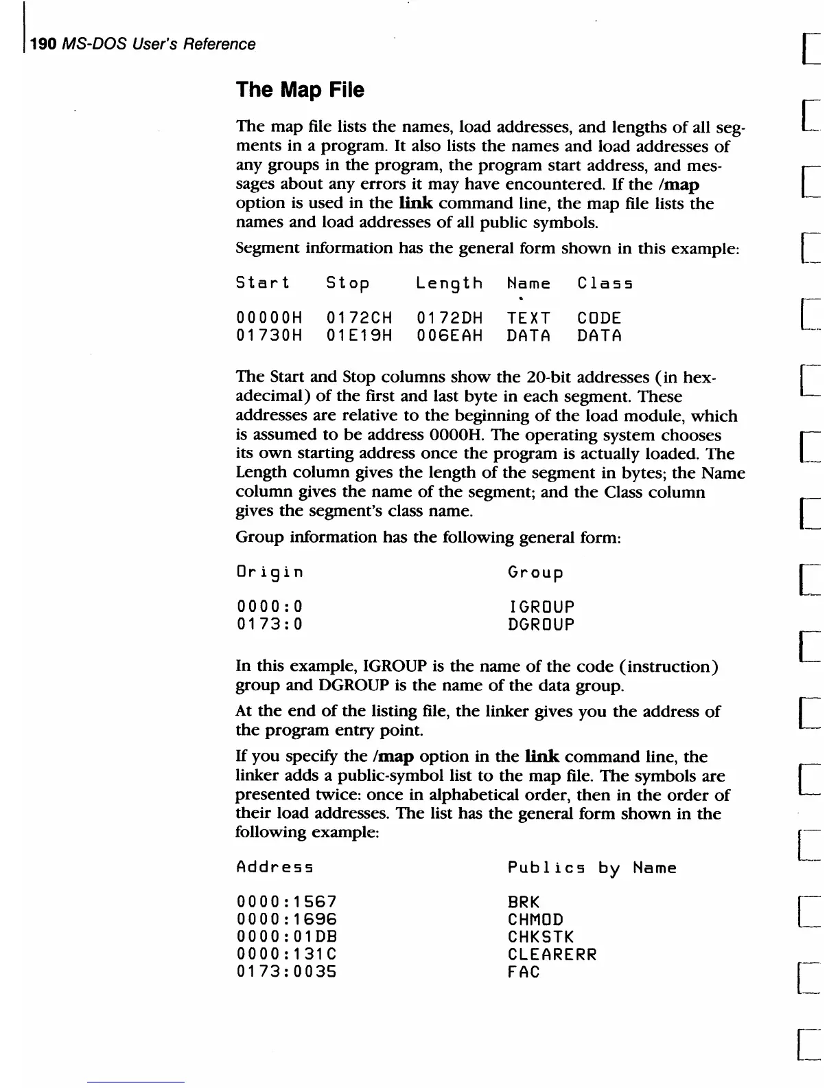 names and load addresses