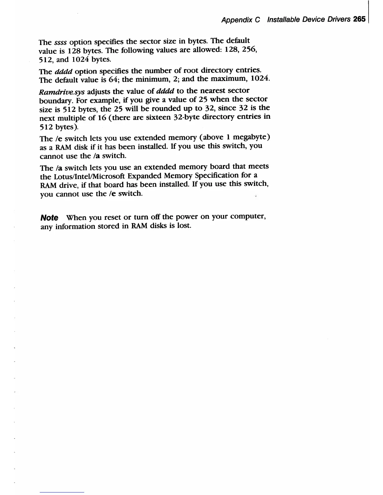 Ramdrive. sys adjusts