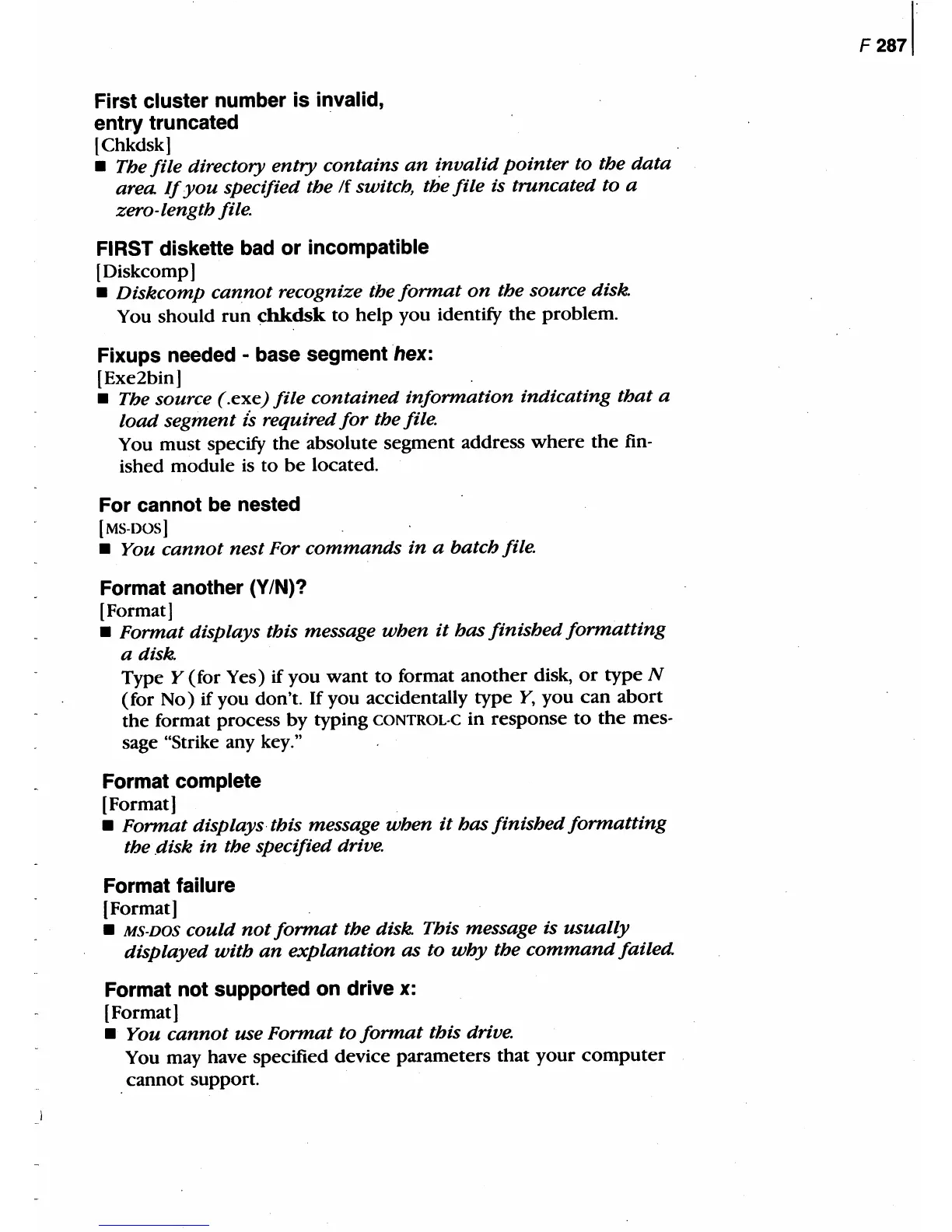 • Format displays tbis message when