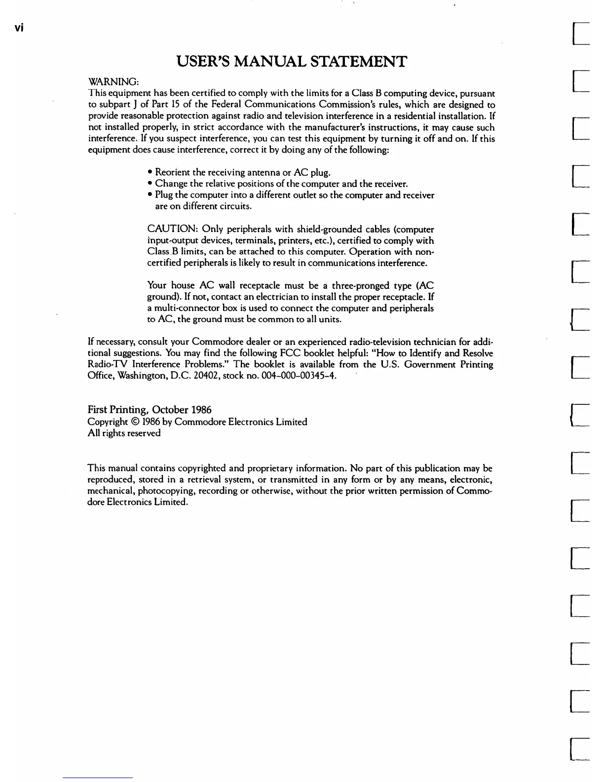 First Printing, October 1986