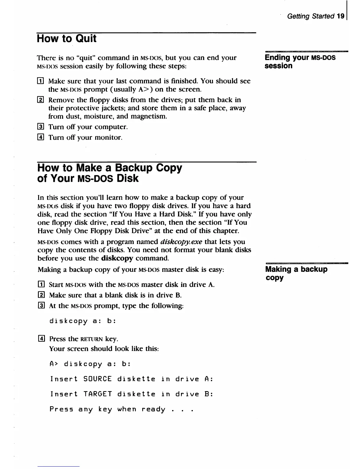 Commodore PC 40 - How to Quit; How to Make a Backup Copy of Your MS·DOS Disk