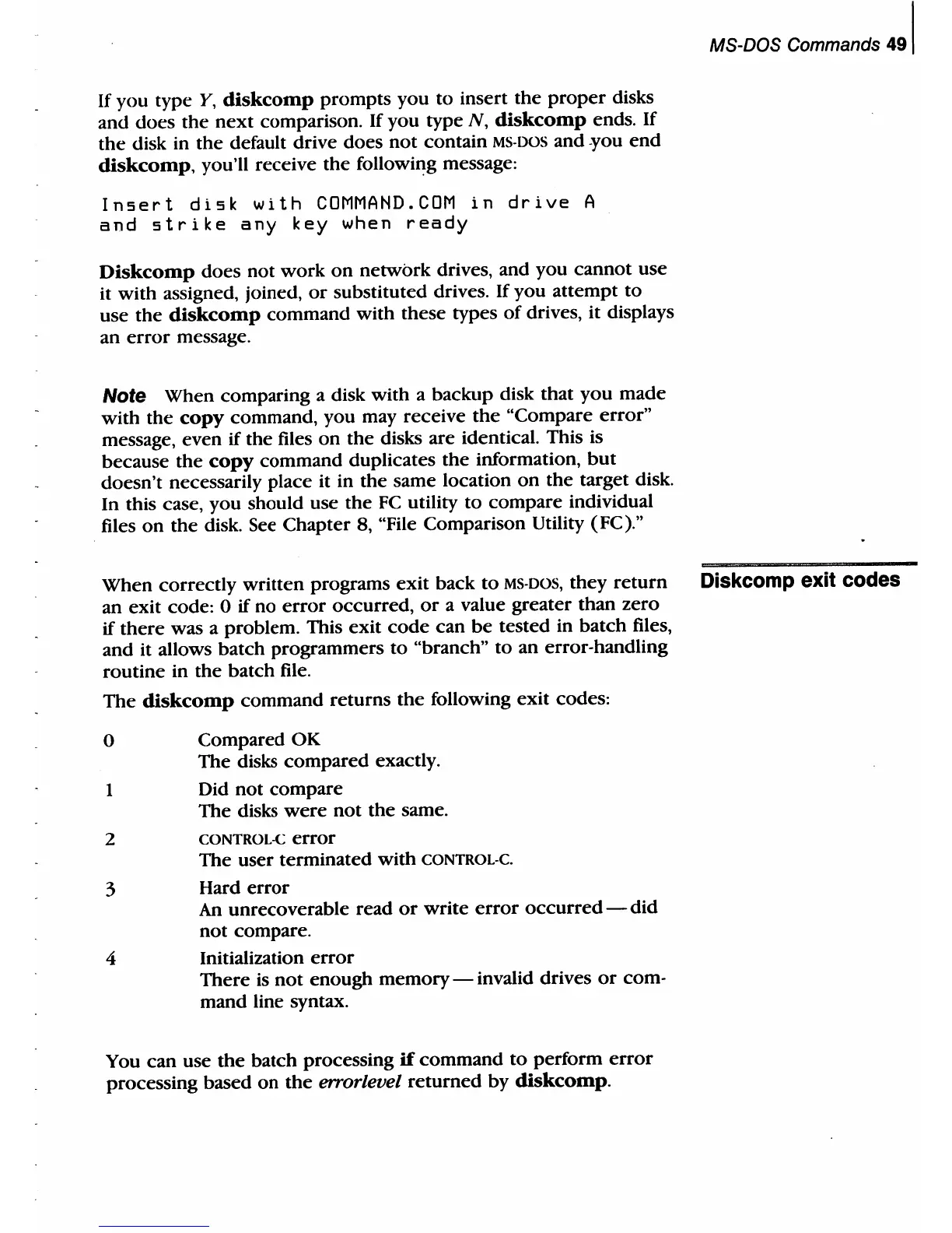 the disk. See Chapter 8, "File Comparison Utility (FC)."