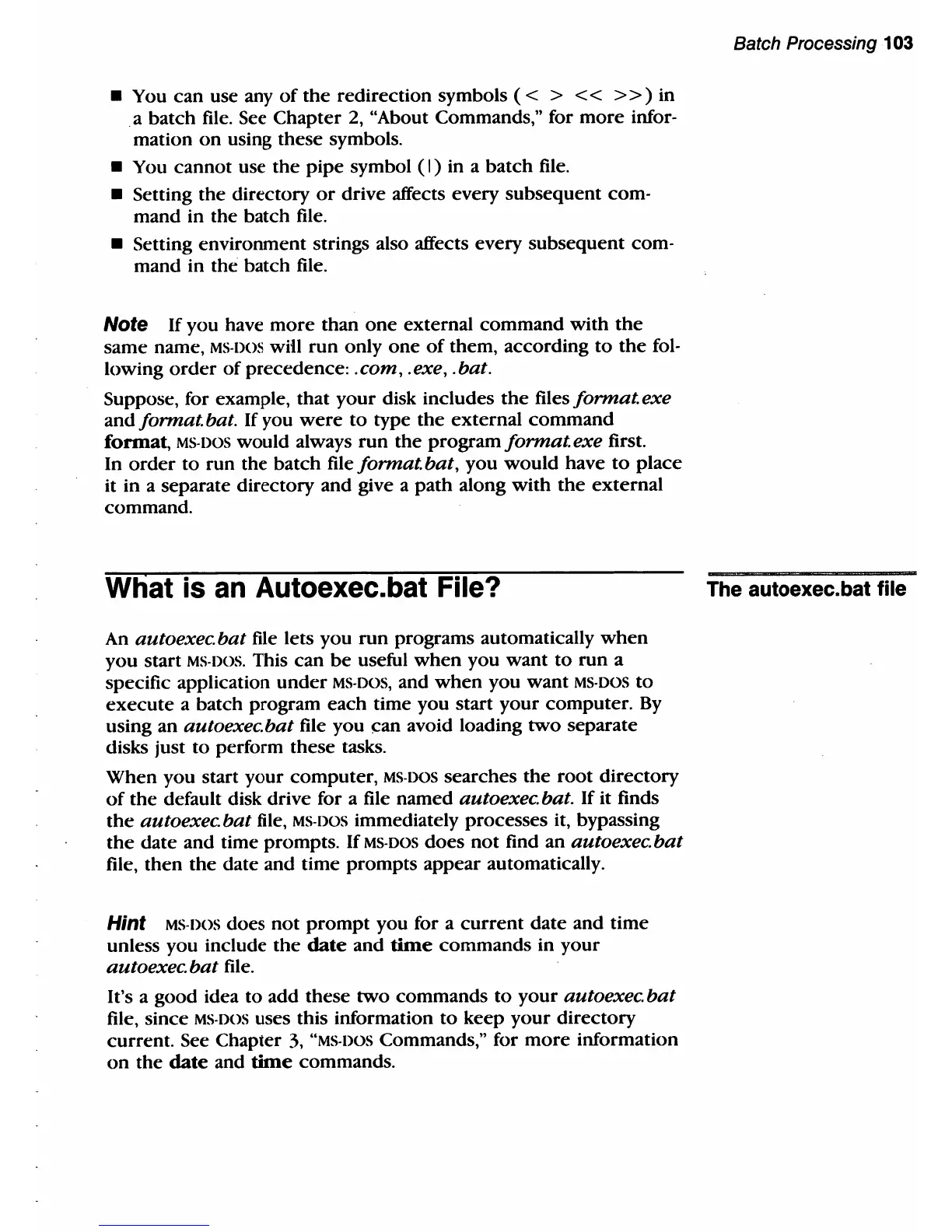autoexec.bat file, MS-DOS immediately