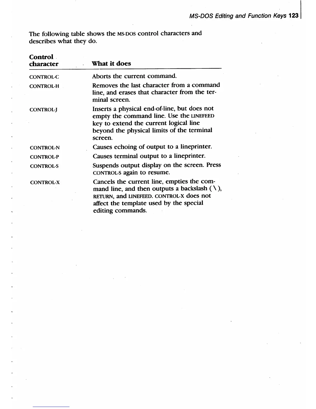 MS-DOS control characters and
