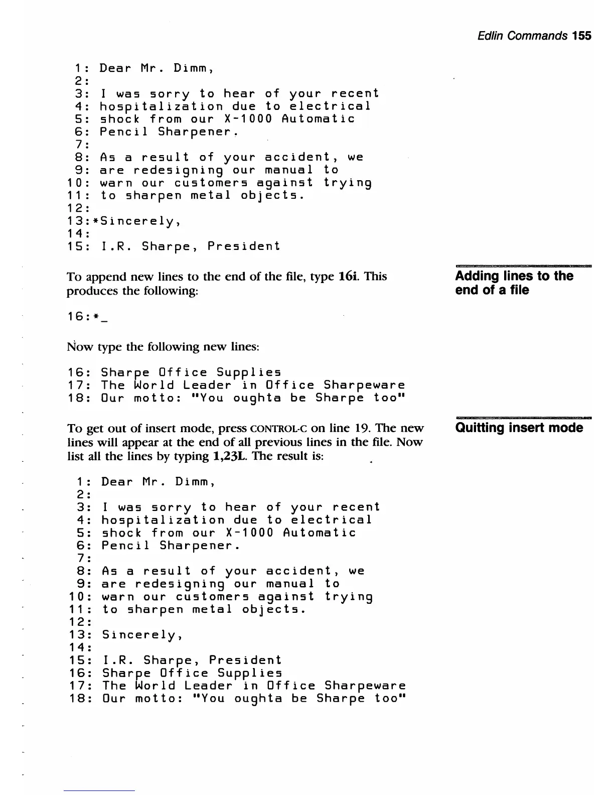 Edlin Commands 155