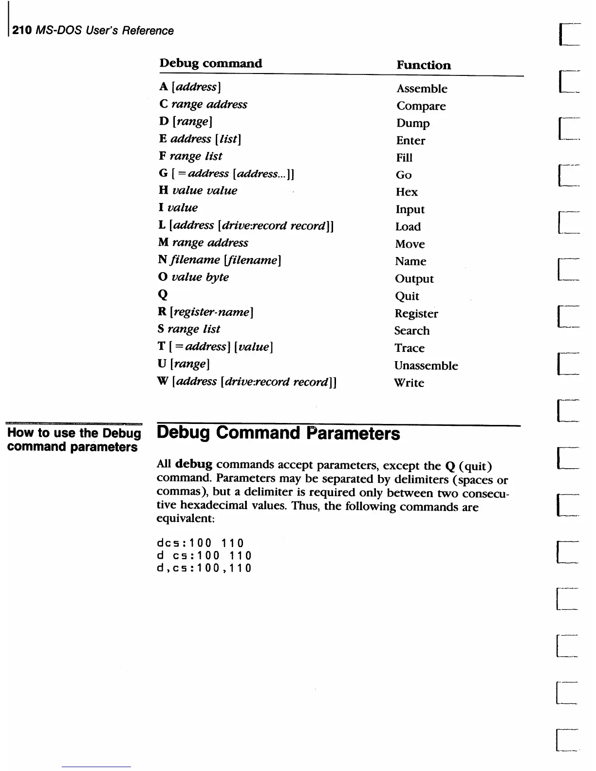 How to use the Debug Debug Command Parameters