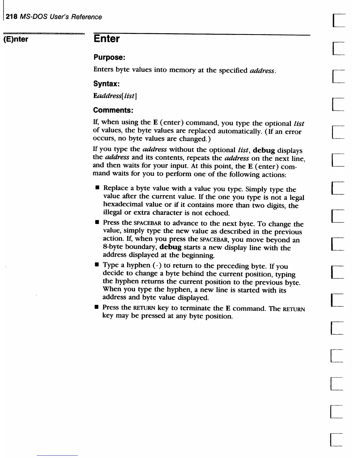 E command. The RETURN