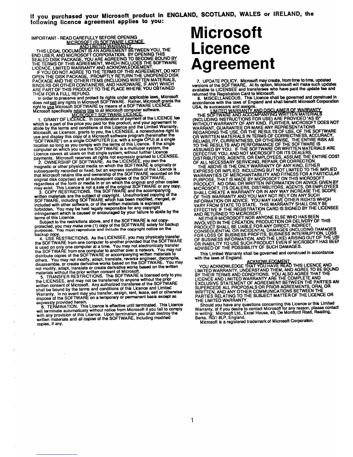 'ollowing licence agreement applies