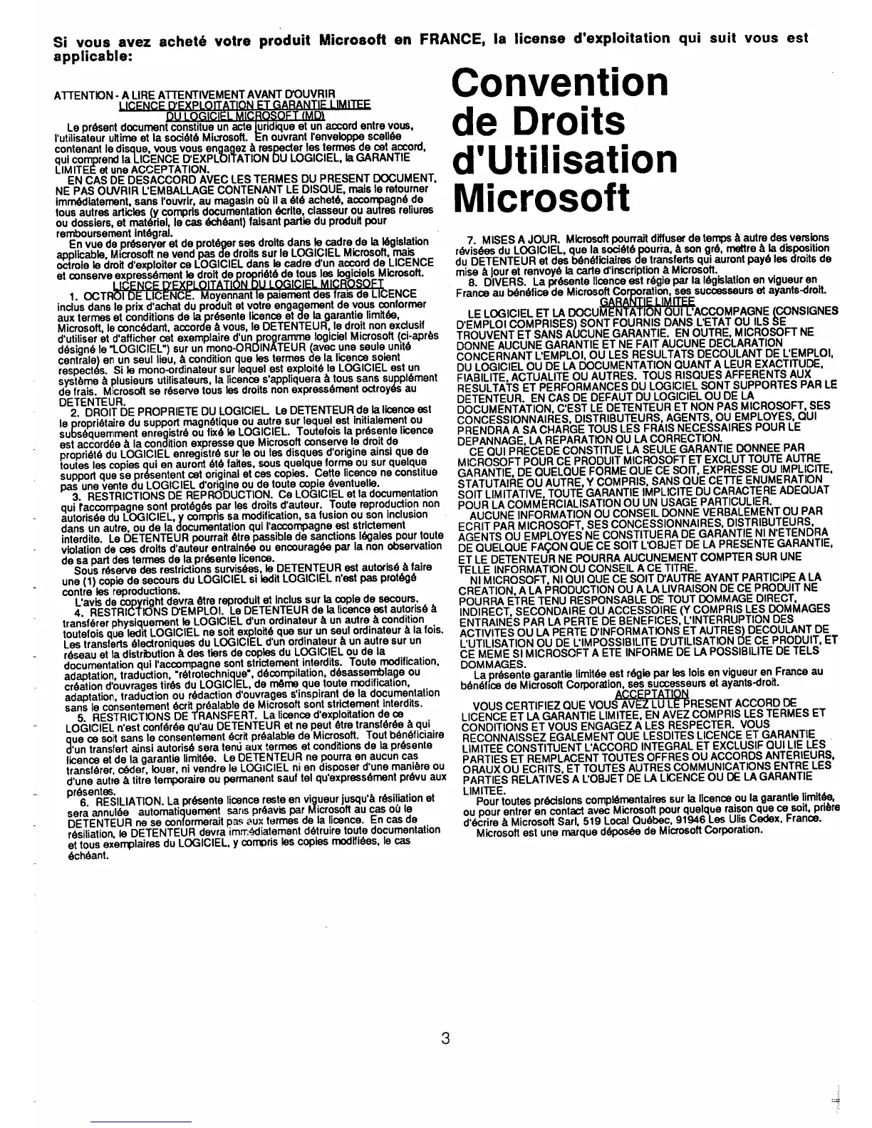 Si vous avez achete votre produit Microsoft en FRANCE, la license d'exploitation qui suit vous est
