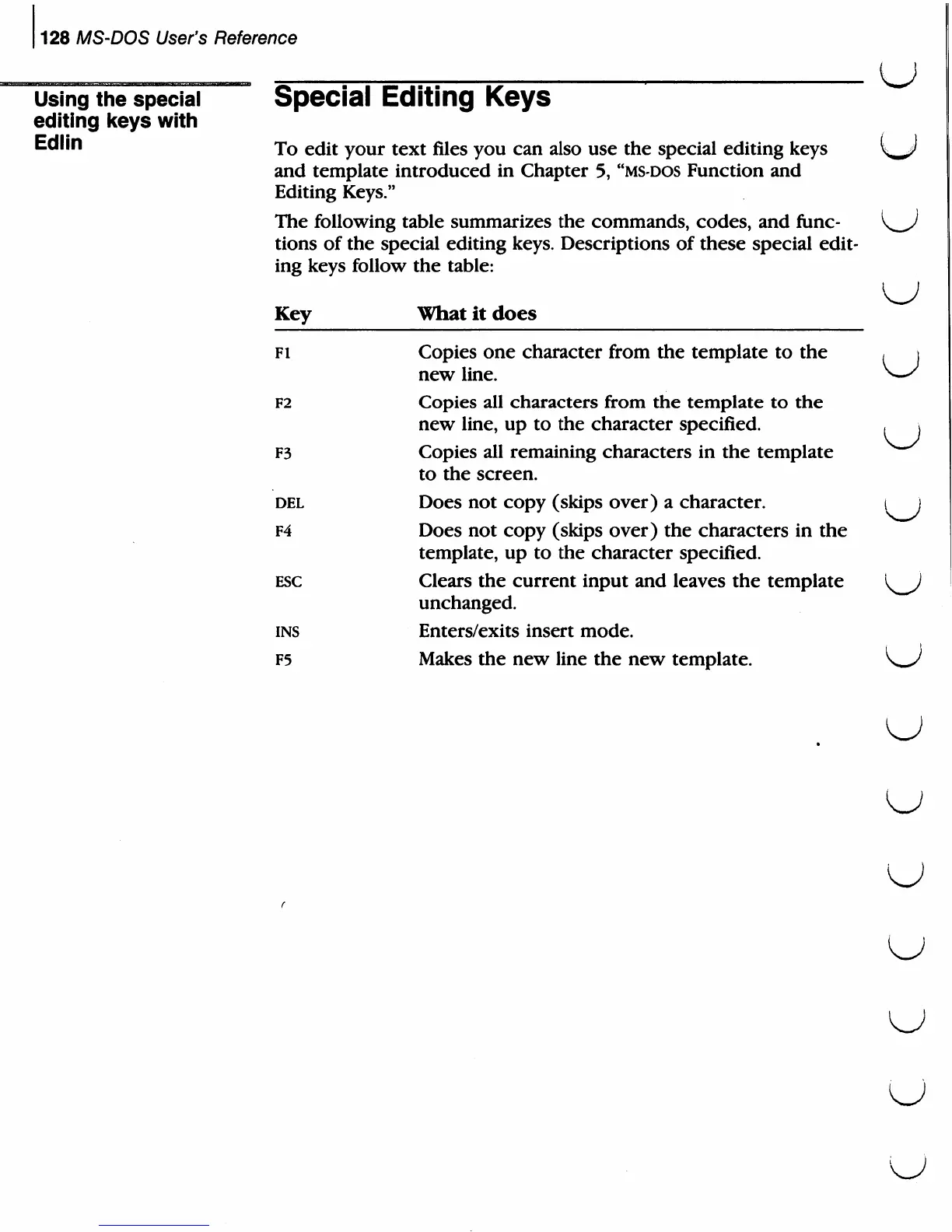 Commodore PC - Special Editing Functions; The MS-DOS editing keys