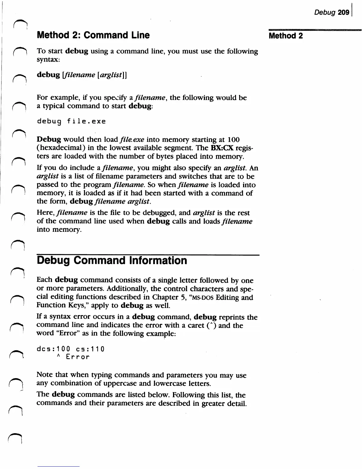 Commodore PC - Method 2: Command Line; Debug Command Information