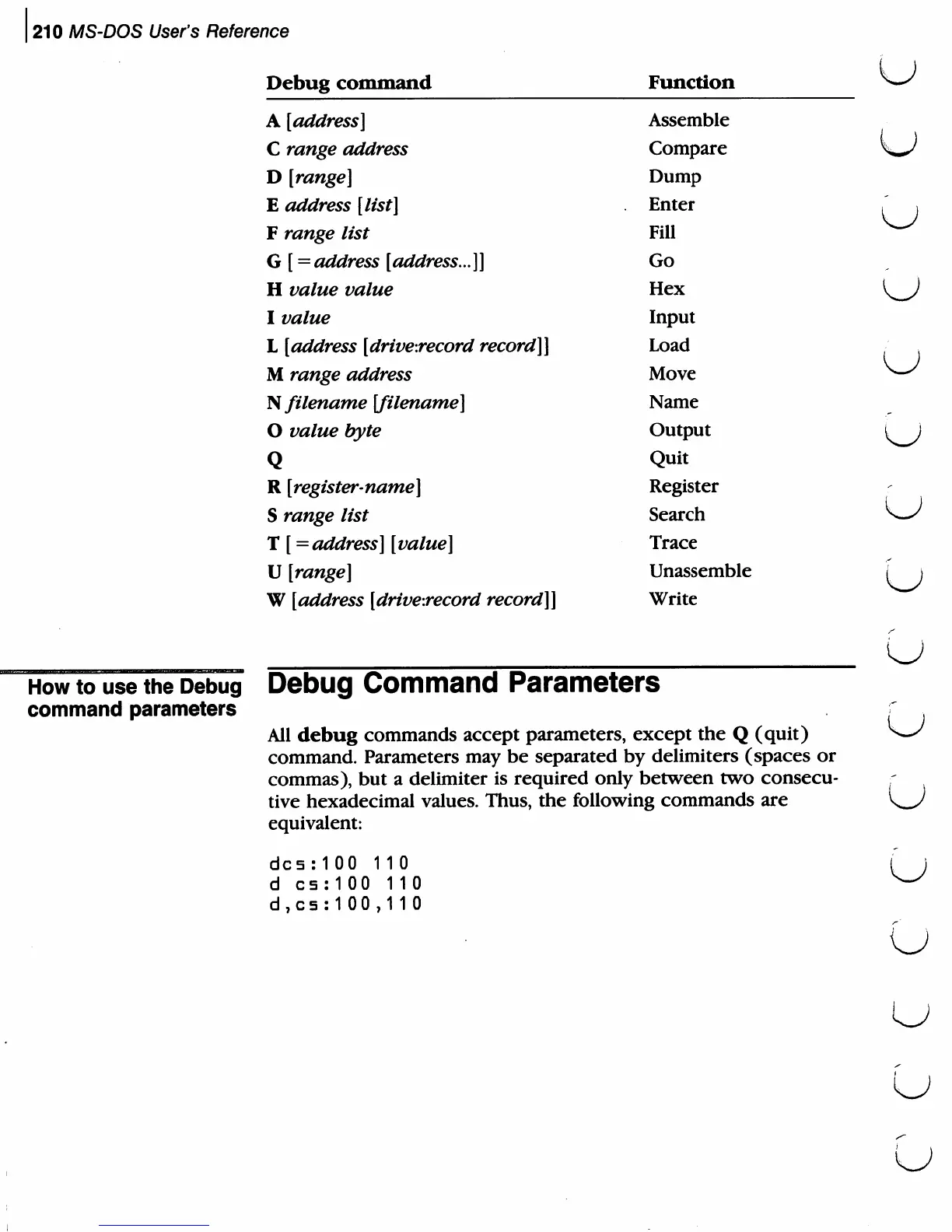 Commodore PC - How to use the Debug command parameters