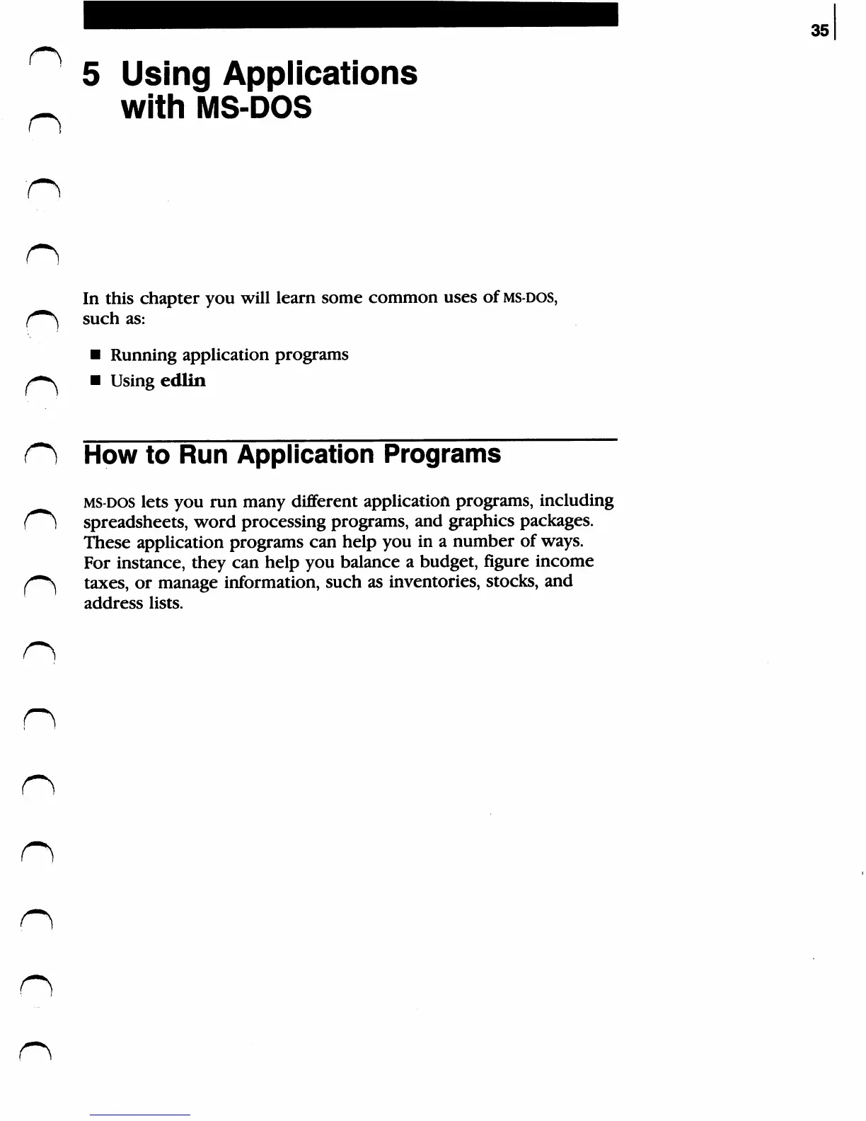Commodore PC - 5 Using Applications with MS-DOS; Running application programs; Using edlin; How to Run Application Programs