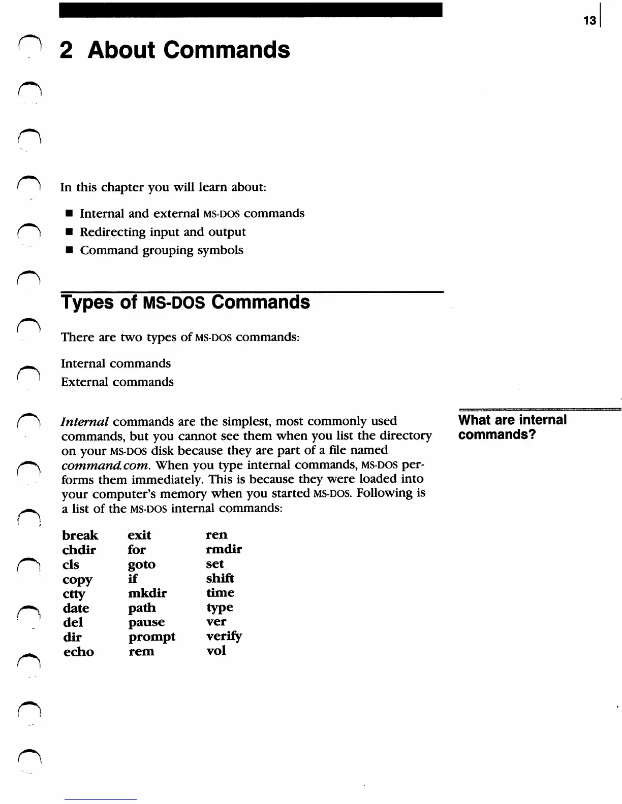 Commodore PC - 2 About Commands; Types of MS-DOS Commands; Internal commands