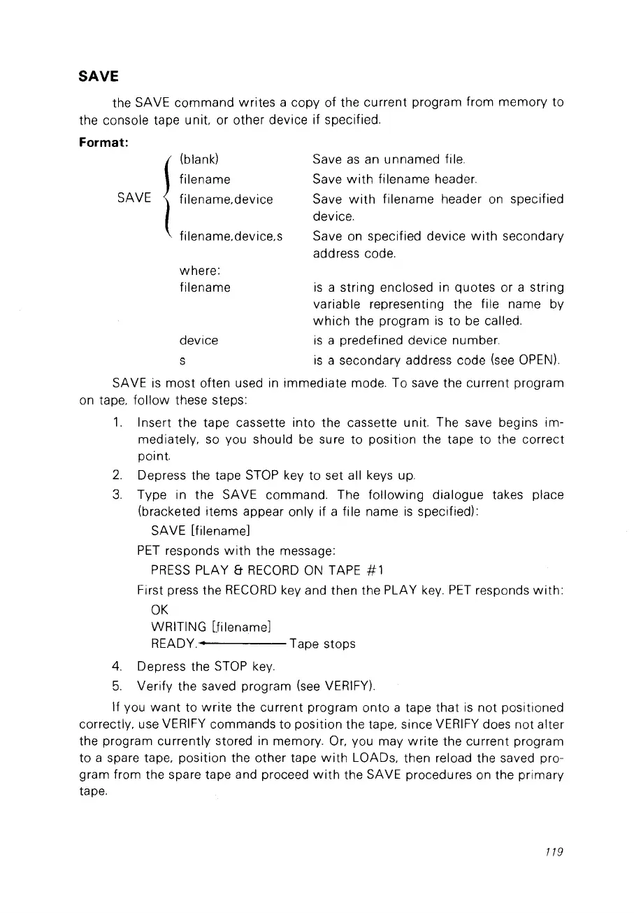 the cassette unit. The save begins im-