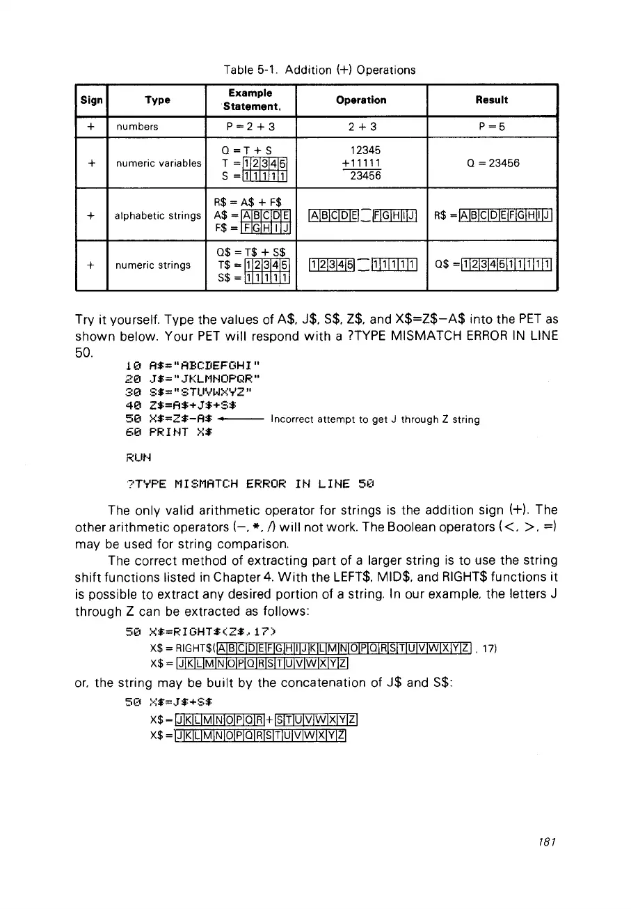 Table 5-1. Addition (+) Operations