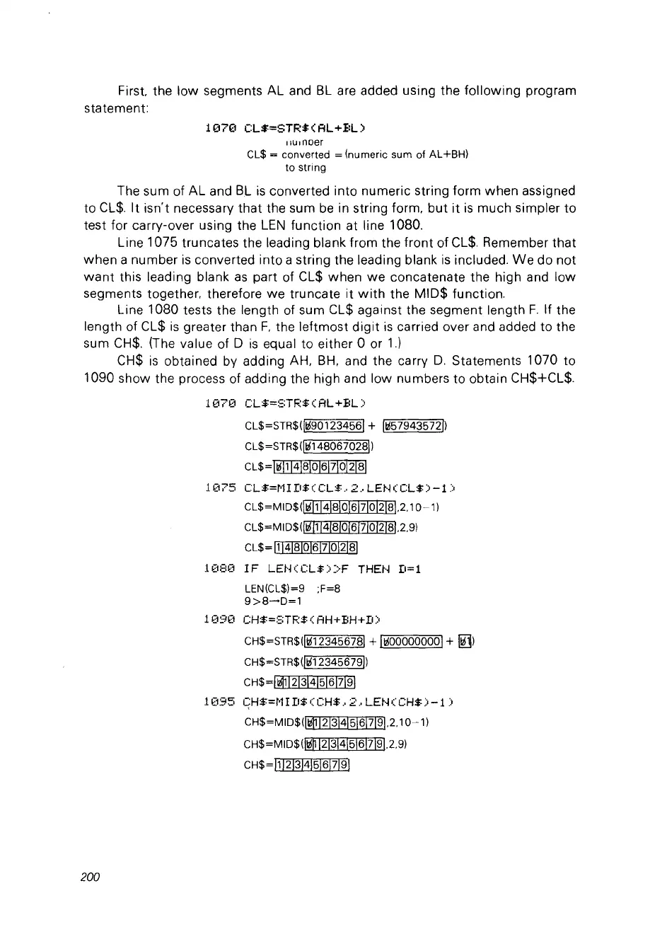 Line 1080 tests the length of sum CL$ against the segment length