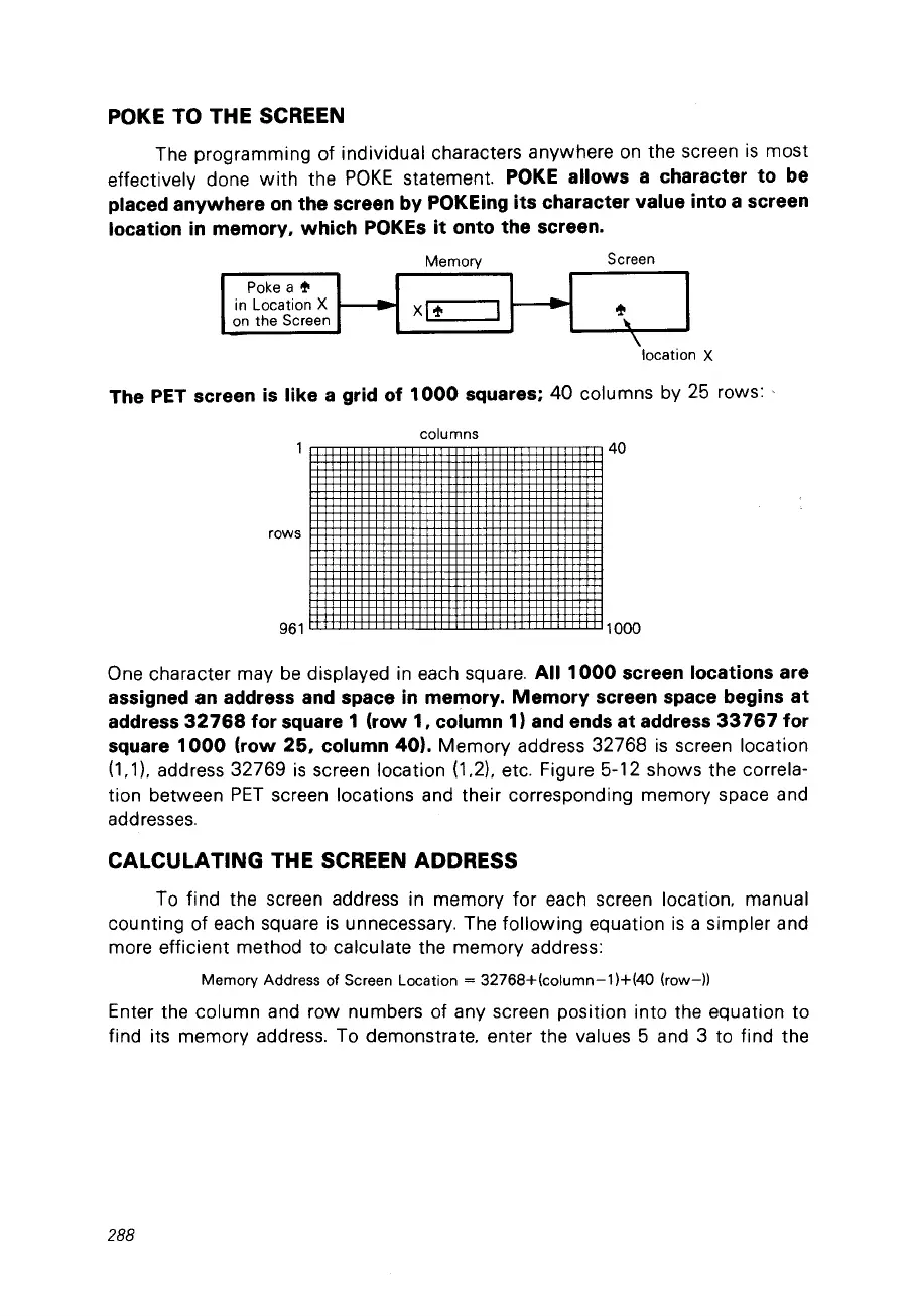 Commodore PET - POKE to the Screen; Calculating the Screen Address