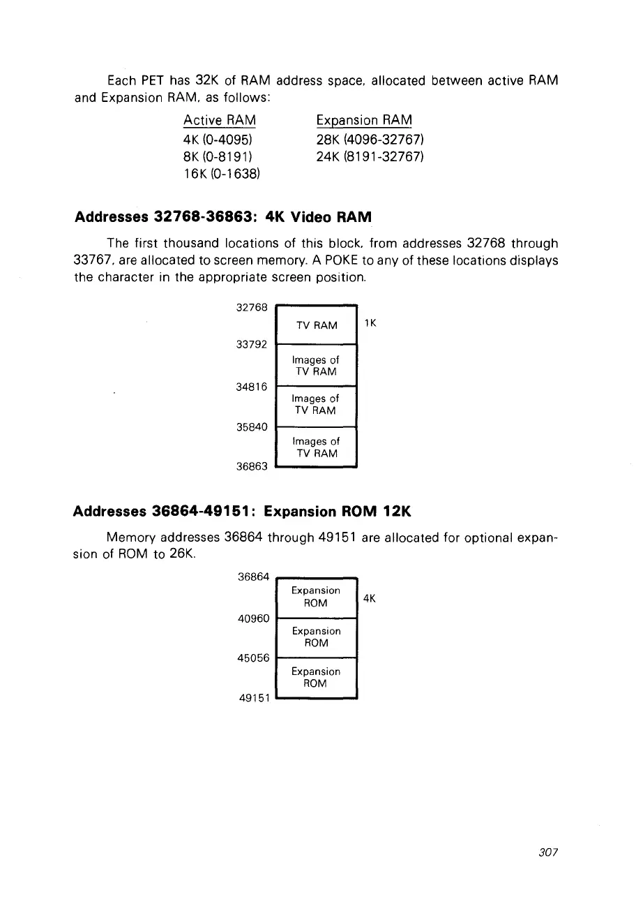 Memory addresses 36864 through 49151 are allocated for optional expan-