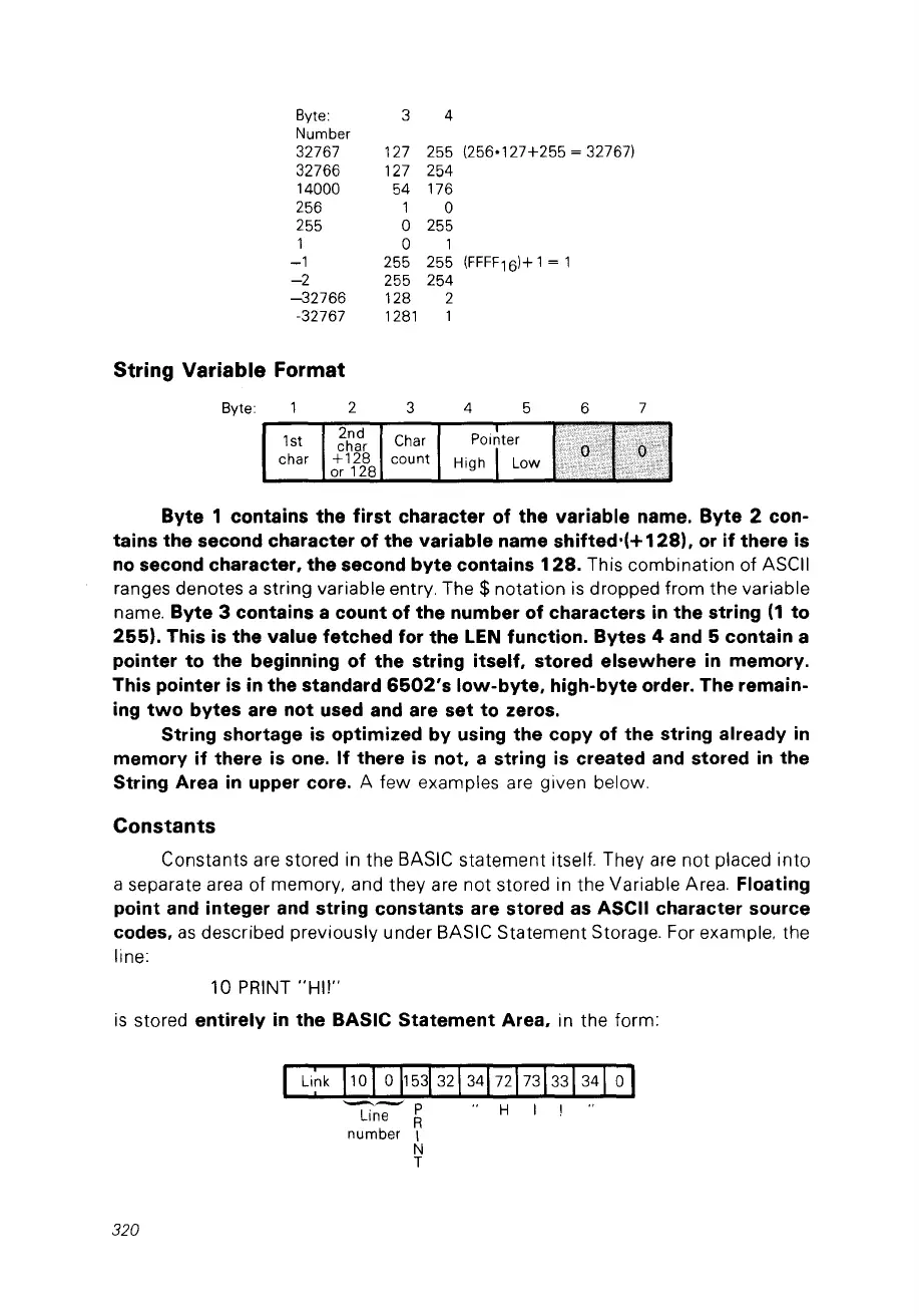 Byte 1 contains the first character of the variable name. Byte 2 con-