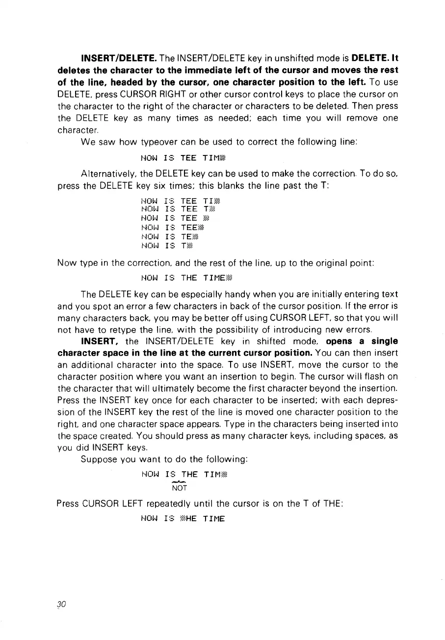 IN8ERT/DELETE. The INSERT/DELETE key in unshifted mode