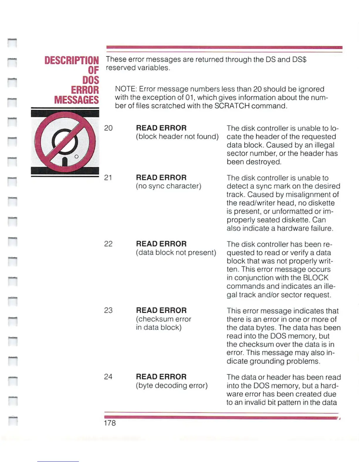 Commodore Plus 4 - DOS ERROR MESSAGES