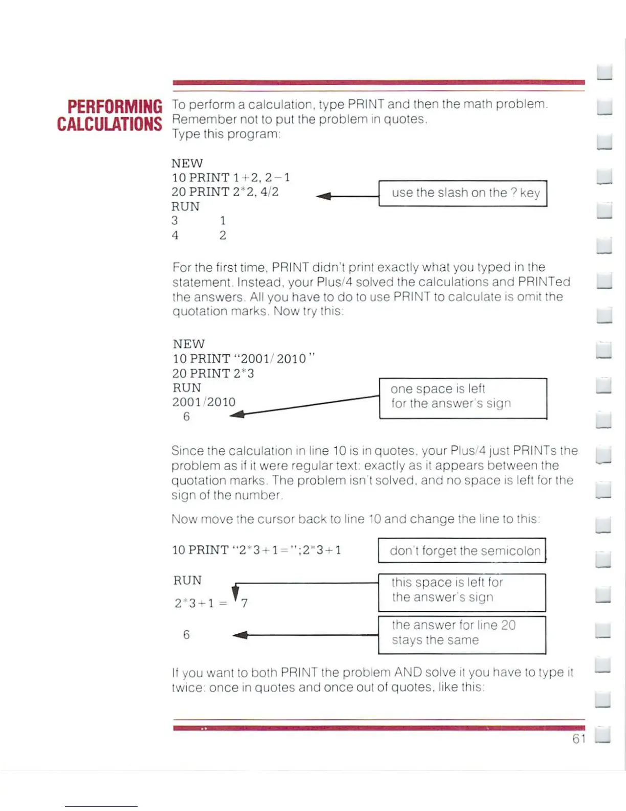 Commodore Plus 4 - Performing calculations; CHAPTER 6 Beginning BASIC Programming