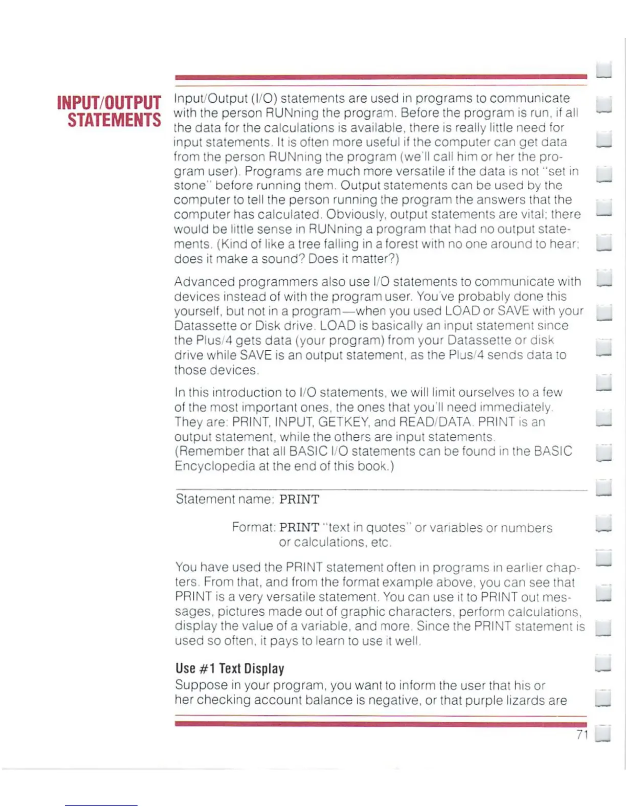Commodore Plus 4 - Input;Output Statements