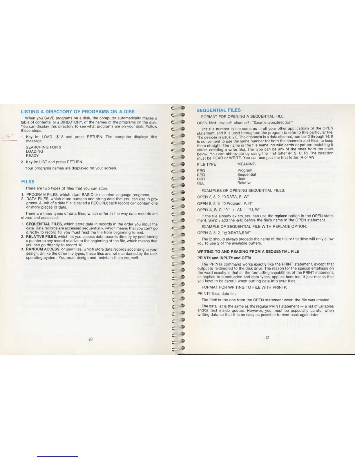 Commodore SX-64 - Listing a Directory of Programs on a Disk; Files; Sequential Files
