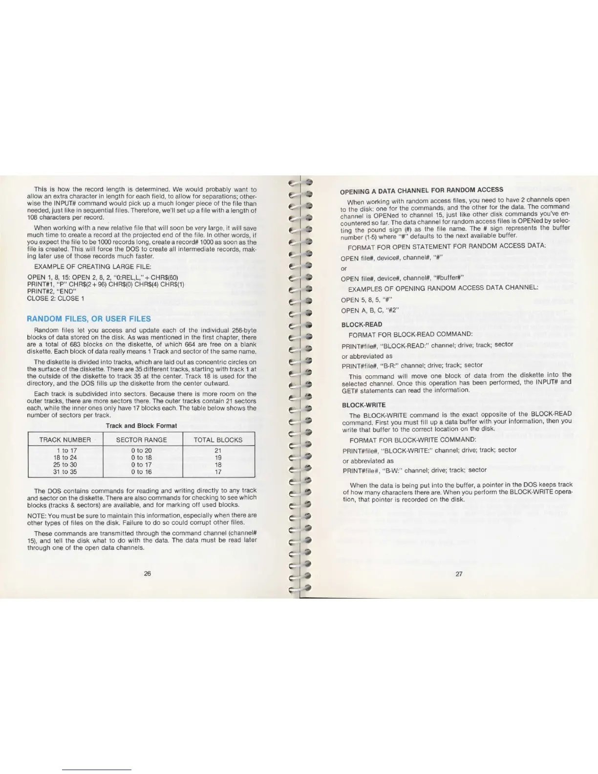 Commodore SX-64 - Random Files, or User Files; Opening a Data Channel for Random Access; Block-Read; Block-Write