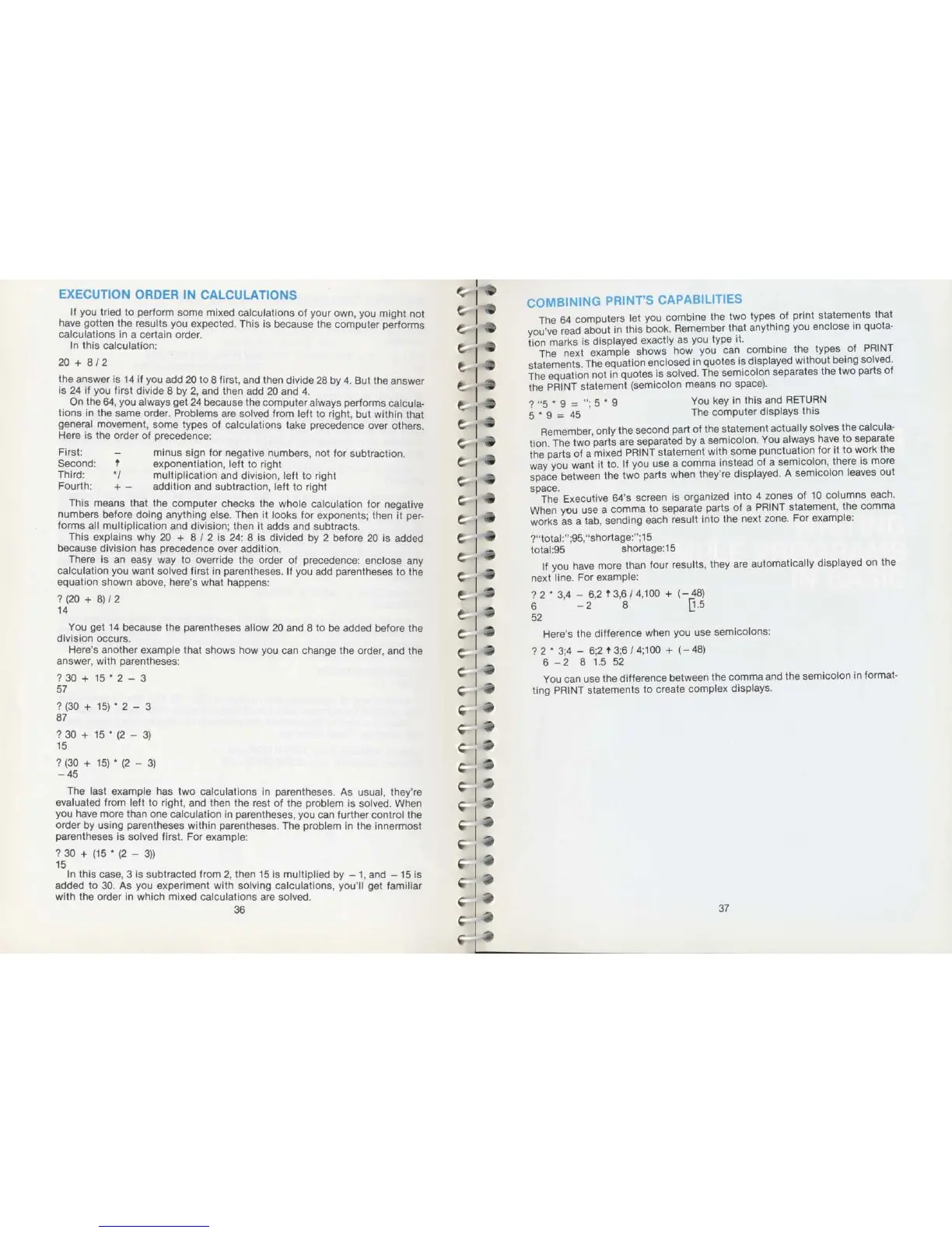Commodore SX-64 - Execution Order in Calculation; Combining Prints Capabilities
